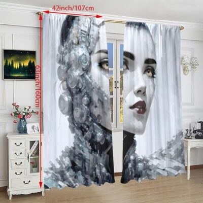 2 шт. — Черно-белая занавеска с принтом головы красавицы — Полиэстеровый материал — подходит для спальни, гостиной, кабинета, личного пространства 52Wx84L(132x213CM)x2