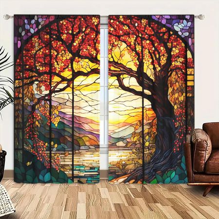 2 шт. цветных стеклянных занавесок с принтом для домашнего декора — оконная отделка с карманом для спальни, офиса, кухни 52.5cmX116cm X 2pcs