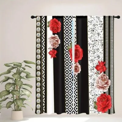 Главная » Все для дома 2 шт. цветочные шторы розы лилии красные белые цветы золотые лепестки ветки листья оконные шторы для спальни гостиной W50xH130(CM)x2PCS-Grommet Top Просмотров 7 A Family Of Home Textiles