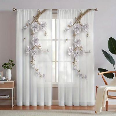 Главная » Все для дома 2 шт. Цветочный принт пряжи занавески, карниз для оконного оформления для спальни офиса кухни гостиной кабинета домашнего декора W110X240H(cm)x2PcsHook Просмотров 1 Yiran Furniture
