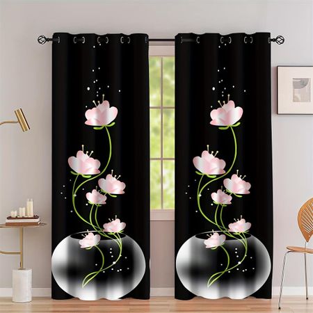 2 шт. Цветочный узор, черный напечатанный карниз для штор, украшение для кармана, полузатемняющие шторы для гостиной, спальни, офиса, украшения для дома 2x50W100H(CM)hook