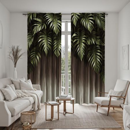 2 шт. декоративных штор с тропическим зеленым широколиственным узором высокой четкости Зеленые шторы с цифровой печатью для украшения дома, стиль украшения гостиной W52H95inchW132H241cm