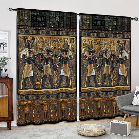 2 шт. Древнеегипетские настенные шторы с карманом на штанге, декоративные, печатные, светофильтрующие шторы для кухни, гостиной, офиса W70 X H165(CM)X2Grommet Top
