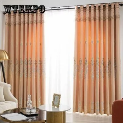 2 шт. двойные тканевые сетчатые вышитые шторы для спальни, полностью затемняющие шторы от пола до потолка, гостиная, балкон, элегантные шторы высокого качества W170*H270cm*2pcs оранжевый