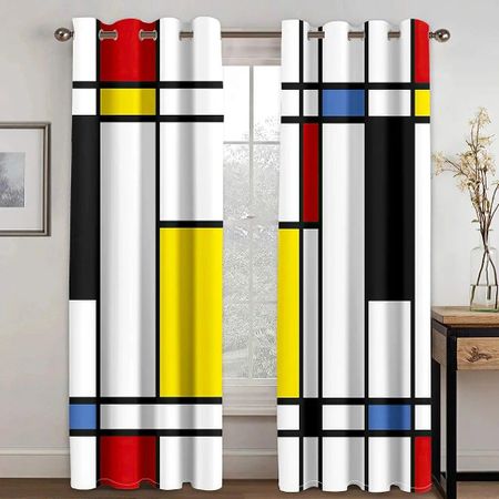 2 шт., геометрический графический круг, квадратный стержень, карманное крепление, шторы с цифровым принтом, полиэстер, материал для спальни, игровой комнаты W50xH130(CM)x2PCS-Grommet Top