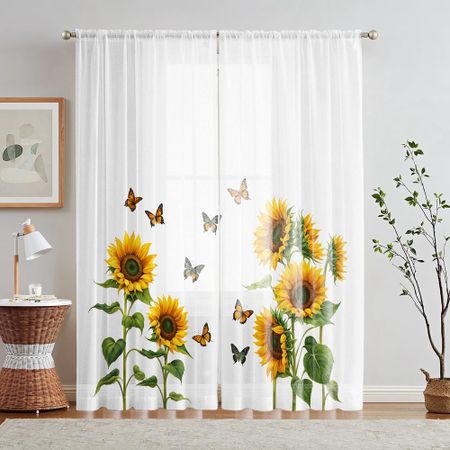 2 шт. HD цифровой желтый подсолнечник напечатанный экран окна украшение дома стиль украшение гостиной спальни шторы на штанге Effe W52H63inchW132H160cm