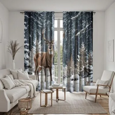 2 шт. HD декоративная занавеска с изображением леса и снега, лося, зеленая цифровая печать, украшение для дома, стиль, украшение для жизни W52H63inchW132H160cm