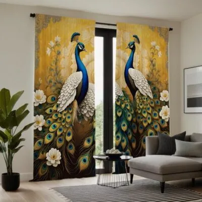 2 шт. HD лесной зеленый белый павлин цветок богатые декоративные занавески желтые цифровые печатные занавески украшение дома стиль де W52H63inchW132H160cm
