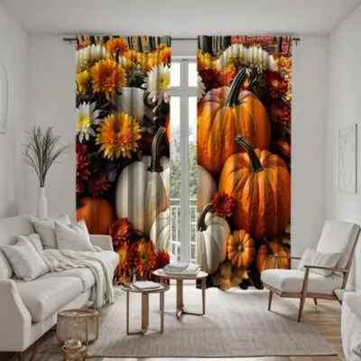 2 шт. HD Маргаритки цветок тыква сад декоративная занавеска Желтая завязка цифровая печать занавеска украшение дома стиль Украшение W52H63inchW132H160cm