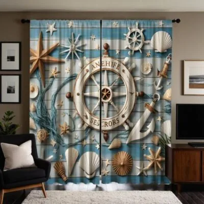 2 шт. HD Море встречается с небом Ракушка декоративная занавеска Синяя галстук цифровая печатная занавеска Украшение дома стиль Украшение гостиная кровать W52H84inchW132H213cm