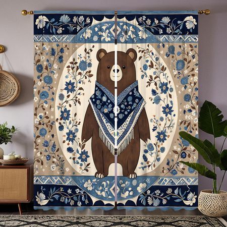 2 шт. HD национальный ветер цветочный медведь декоративная занавеска синяя цифровая печать занавеска украшение дома стиль украшение гостиная W52H63inchW132H160cm