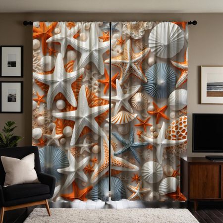 2 шт. HD Ocean World декоративная занавеска в виде ракушки Желтая завязка цифровая печатная занавеска Украшение дома стиль Украшение гостиной W52H63inchW132H160cm