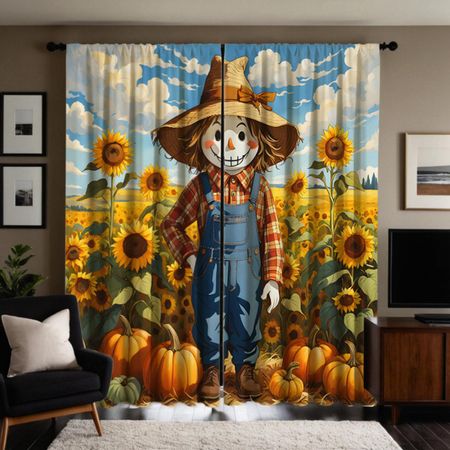 2 шт. HD Подсолнух пугало декоративная занавеска в поле Желтая завязка цифровая печать занавеска Домашнее украшение стиль Decorati W52H63inchW132H160cm