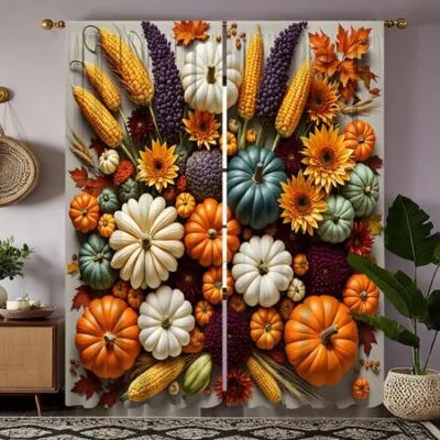 2 шт. HD Праздник урожая тыква кукуруза сорго декоративная занавеска Желтая завязка цифровая печать занавеска украшение дома стиль Декабрь W52H63inchW132H160cm