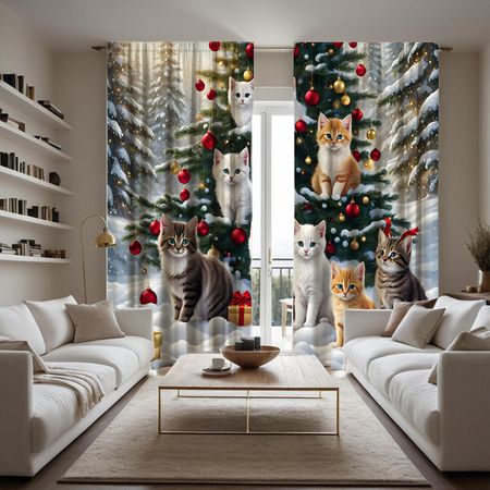 2 шт. HD Рождественская елка на кошачьем снегу декоративная занавеска Желтая завязка цифровая печать занавеска украшение для дома стиль decora W52H63inchW132H160cm