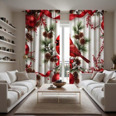 2 шт. HD Рождественские праздничные красные фрукты Красные ветки птиц на декоративных занавесках Красный галстук цифровая печать занавесок Украшение для дома W52H63inchW132H160cm