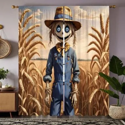 2 шт. HD штор с изображением пугала кукурузного поля Желтые шторы с цифровой печатью Украшение дома в стиле гостиной, кровати W52H63inchW132H160cm