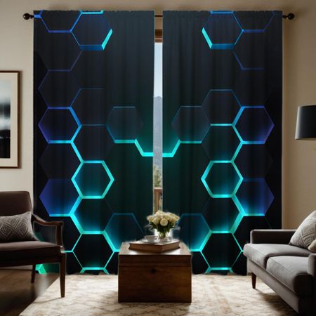 2 шт. HD стереовыпуклые геометрические шестиугольные декоративные занавески Черные занавески с цифровой печатью Стиль украшения для дома Украшение W52H63inchW132H160cm