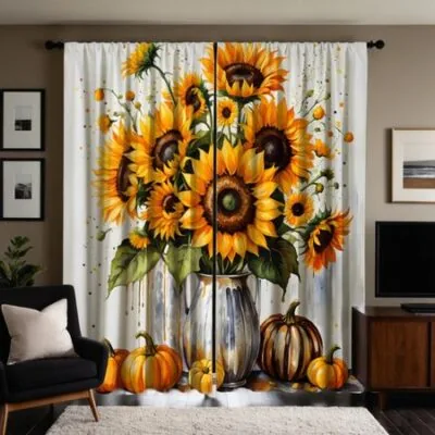 2 шт. HD ваза на День Благодарения подсолнух тыква занавеска желтая завязка занавеска с цифровой печатью стиль домашнего декора украсить гостиную W52H63inchW132H160cm