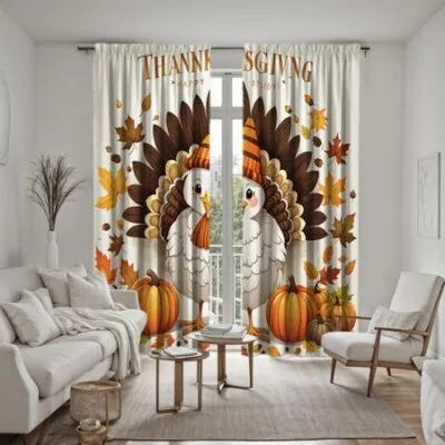 2 шт. HD занавеска с изображением индейки в виде тыквы на День благодарения, зеленая, белая, с цифровым принтом, занавеска для домашнего декора, украсит гостиную, кровать W52H63inchW132H160cm