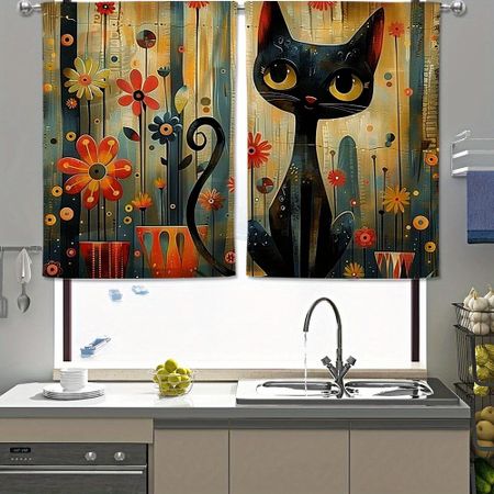 2 шт. Художественная занавеска с принтом кота для домашнего декора, декора карманного окна, для спальни, офиса, кухни, гостиной и кабинета W50 X H130(CM)X2Grommet Top