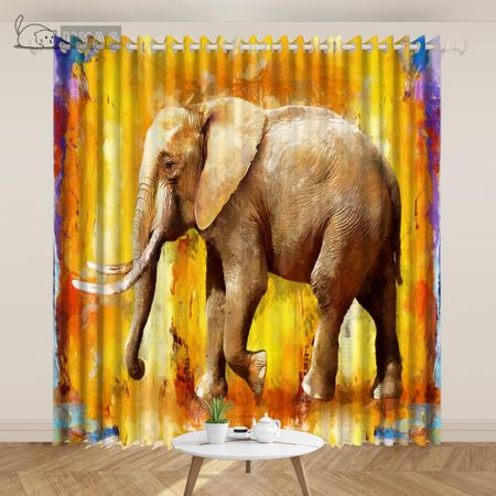 2 шт экзотическая индийская Юго-восточная Азия стиль масляной живописи занавески благоприятный слон занавеска искусство гостиная спальня индивидуальные занавески (50Wx50H)x2(CM)&Rod Pocket