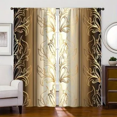 2 шт. Элегантные золотые шторы с принтом цветов и лебедей для домашнего декора, карманные шторы для окон, спальни, офиса, кухни, комнаты 200W240H(CM)79x95inGrommet Top