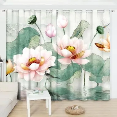 2 шт. Красивые шторы в китайском стиле с абажуром в виде лотоса, новые индивидуальные шторы для спальни, гостиной, плавающие шторы на окнах с люверсами, распродажа W50H60(CM)x2PCS&Hook