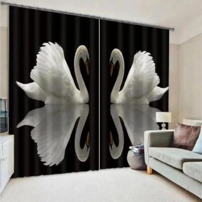 2 шт. красная роза, лебедь, береговая занавеска с принтом сердца, защита конфиденциальности, декор для гостиной, занавеска на день Святого Валентина, романтический креатив 100W130H(CM)40x51inGrommet Top