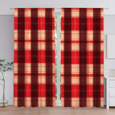 2 шт. Красные и черные сетчатые занавески с принтом для рождественского домашнего декора — оконные карманы с карнизом для спальни, офиса, кухни 52.5cmX116cm X 2pcs