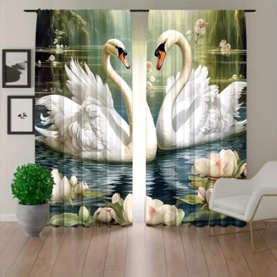 Главная » Все для дома 2 шт. Лебедь цифровая печать карниз для штор карманные шторы для гостиной офис домашний декор 100W130H(CM)40x51inGrommet Top Просмотров 1 Yiran Furniture
