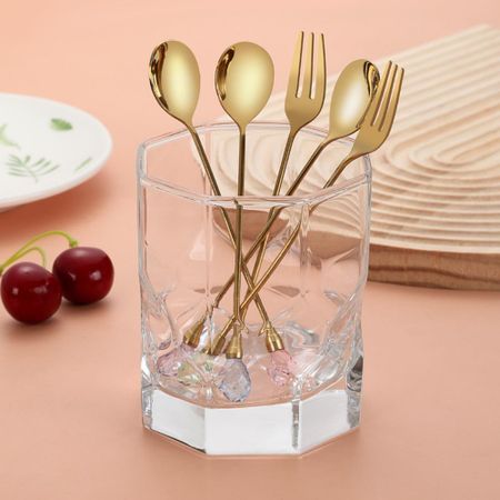 2 шт. Многоцелевая хрустальная чайная ложка из нержавеющей стали, десертная вилка, кофейная ложка для фруктов silver-fork-blue diamond