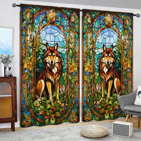 Главная » Все для дома 2 шт. О цветном стекле Волк Печатный занавес для домашнего декора — Карманный оконный декор для спальни, офиса, кухни 52.5cmX116cm X 2pcs Просмотров 8 Versatile Home Furnishing