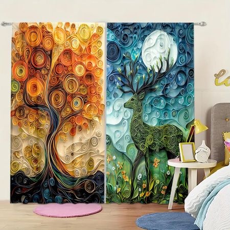2 шт. Оригинальная рулонная занавеска с художественным принтом для домашнего декора — Карманная штора для спальни, офиса, кухни 132cmX213cm X 2pcs