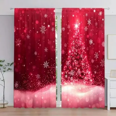 2 шт. Ослепительно-красная занавеска с принтом рождественской елки для рождественского декора дома — Карманная штора на окно для спальни, офиса 52.5cmX116cm X 2pcs