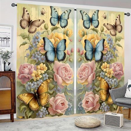 Главная » Все для дома 2 шт. Пасторальные цветы бабочки напечатаны полупрозрачные шторы, гостиная игровая спальня многосценный полиэстер штанга карман декор 2x50W130H(CM)hook Просмотров 1 Yiran Furniture