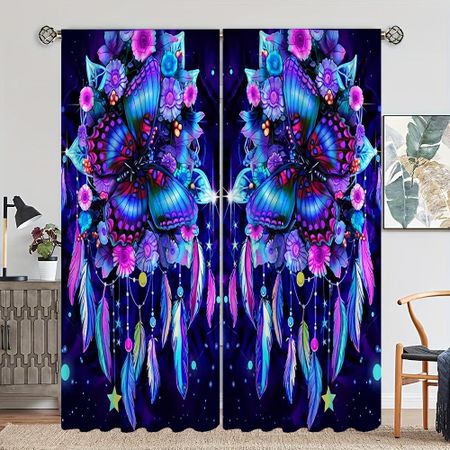 2 шт. Пятицветные шторы с принтом бабочек, для кабинета, кухни, гостиной, комнаты в общежитии, занавески на карнизах, аксессуары для спальни W65X60H(cm)X2PcsGrommet Top