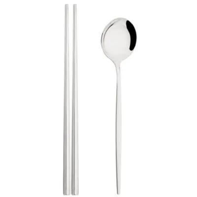 2 шт. портативная черная посуда из нержавеющей стали, набор столовых приборов, ложка, палочки для еды, набор западных обедов, ужинов, дорожная посуда серебряный