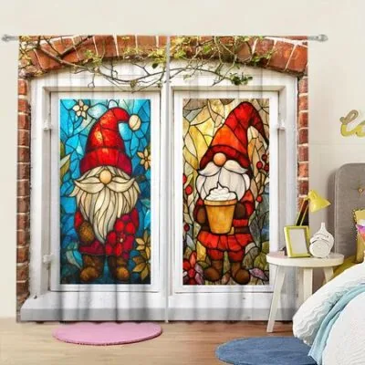 2 шт. Рождественская цветная стеклянная занавеска с принтом гнома для рождественского домашнего декора — карманная штора на карнизе для спальни, офиса 52.5cmX116cm X 2pcs