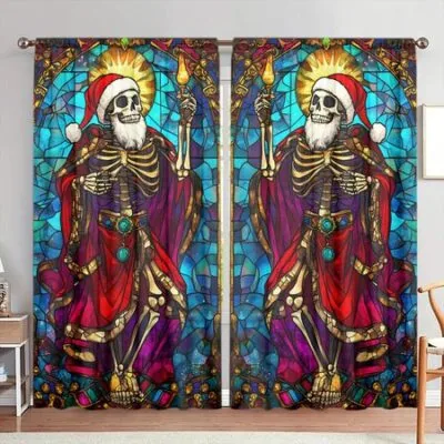 2 шт. Рождественский скелет Цветное стекло Оконная штора с принтом для домашнего декора — Кулиска для шторы Обработка окна для спальни, офиса 52.5cmX116cm X 2pcs