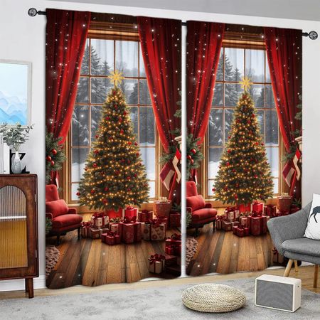 2 шт. Штора с принтом «С Рождеством» для рождественского домашнего декора — Шторная лента с карманом для штанги, оконное оформление для спальни, офиса, кухни 52.5cmX116cm X 2pcs
