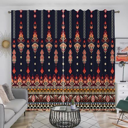 2 шт. шторы с геометрическим рисунком в мексиканском стиле, штора с кулиской для общественных мест, гостиной, спальни, офиса, кабинета, дома 2x60Wx50H(CM)Grommet Top