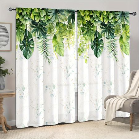 2 шт. Шторы с листьями растений в скандинавском стиле — светофильтрующее оконное покрытие для декора кухни, гостиной, офиса и спальни W50X130H(cm)x2PcsGrommet Top