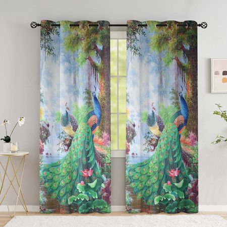 2 шт. Шторы с павлиньими и орхидейными узорами для спальни, гостиной, окна от пола до потолка, кухонные жалюзи, шторы с люверсами сверху (W50H130cm)-2pcsGrommet Top