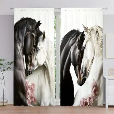 2 шт. Шторы с принтом «Лошади, которые любят друг друга» для домашнего декора — оконные карманы с карнизом для спальни, офиса, кухни 52.5cmX116cm X 2pcs