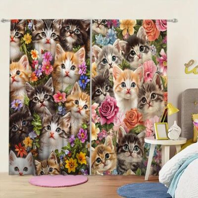 Главная » Все для дома 2 шт. Шторы с принтом «Много котят» для домашнего декора — оконные карманы для спальни, офиса, кухни 52.5cmX116cm X 2pcs Просмотров 1 Versatile Home Furnishing