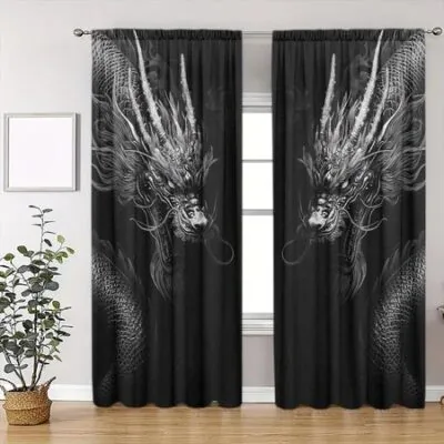 2 шт. Шторы с принтом «Пробуждение и полет дракона» для домашнего декора — оконные карманы с карнизом для спальни, офиса, кухни 52.5cmX116cm X 2pcs