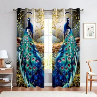 2 шт. шторы с рисунком павлина в виде животных, карман на штанге, полузакрытие, декоративные шторы для гостиной, спальни, кухни, можно настроить W50xH140(CM)x2PCSRod pocket