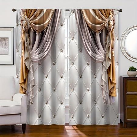 2 шт. великолепных европейских печатных штор, для кабинета, кухни, гостиной, комнаты в общежитии, занавески на карнизах, аксессуары для спальни W65X60H(cm)X2PcsGrommet Top