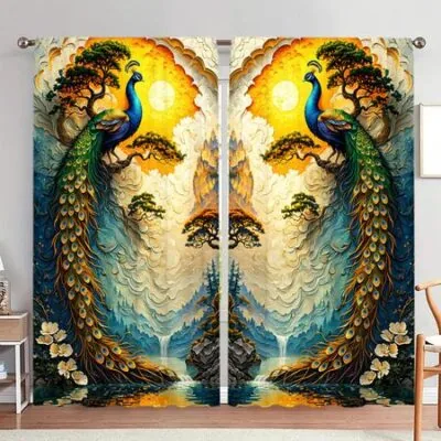 2 шт. Великолепный павлин под закатом с принтом штор для домашнего декора — Карманный карниз для оконной отделки для спальни, офиса, кухни 52.5cmX116cm X 2pcs